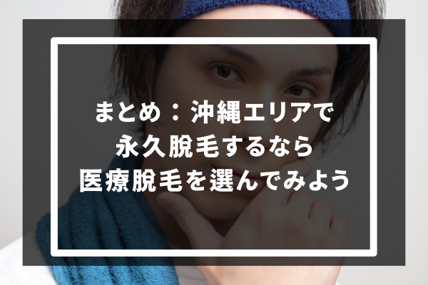 沖縄エリアで医療脱毛ができるクリニックや、メンズ医療脱毛のメリット、メンズ医療脱毛を選ぶ時のポイントなどについてお伝えしてきました。